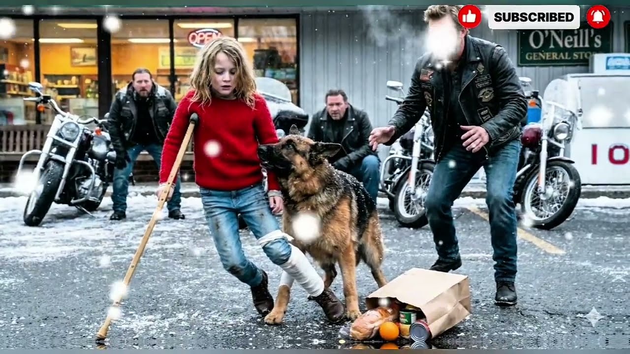 In einer Welt, die oft wegsieht, wenn das Leid am größten ist, erinnert uns die Geschichte der kleinen Emilia und ihres treuen Hundes Max daran, dass Hilfe manchmal von den unerwartetsten Orten kommt. Es war ein bitterkalter Tag im Landkreis Seetal. Der Schnee trieb in wirbelnden Wellen durch die Straßen, als die Tür von O’Neils Gemischtwarenladen aufschwang. Heraus trat ein zerbrechliches, etwa neunjähriges Mädchen. In ihren Armen hielt sie eine braune Papiertüte, während sie sich mühsam auf einer einzelnen hölzernen Krücke abstützte. Ihr Bein war grob verbunden, und jedes Mal, wenn sie versuchte aufzutreten, zuckte ein tiefer Schmerz durch ihr Gesicht – ein Schmerz, den sie mit einer für ihr Alter fast unheimlichen Tapferkeit zu verbergen suchte.