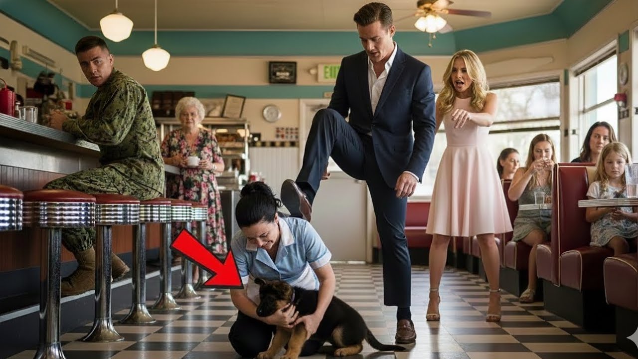 Reiches Paar tritt Kellnerin, die ihren kranken Schäferwelpen schützt – ein Navy SEAL sieht zu