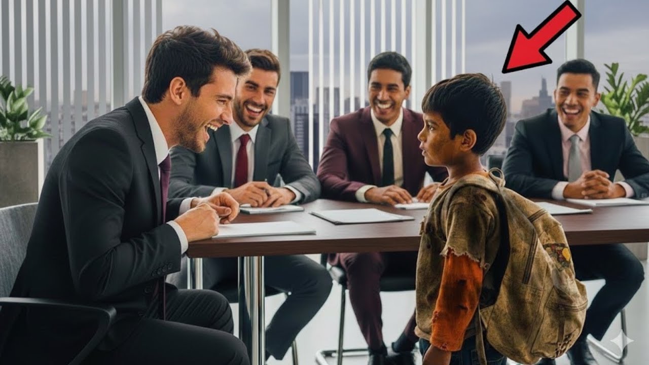 Die Stille erfüllte den Raum, als der Junge in der zerrissenen Kleidung eintrat und mit fester Stimme sagte: “Guten Morgen, ich bin der neue Eigentümer dieses Unternehmens.” Der gesamte Tisch brach in Gelächter aus, die Führungskräfte zeigten mit Fingern auf ihn spotteten und demütigten den Jungen, alle bis auf eine Frau in der Ecke, die ihn mit Respekt ansah und ihn mit Würde behandelte.