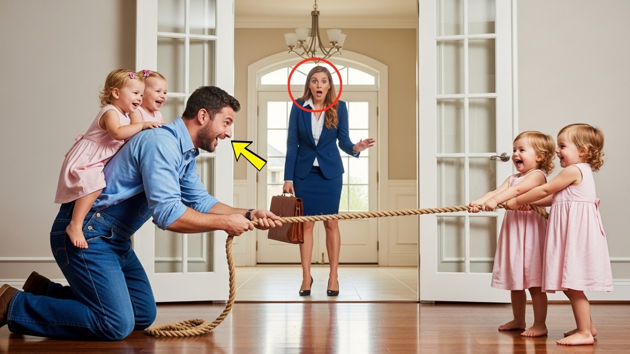 Michael öffnete die Tür. Er sah müde aus. Als er Emily und die vier Mädchen sah, weiteten sich seine Augen.