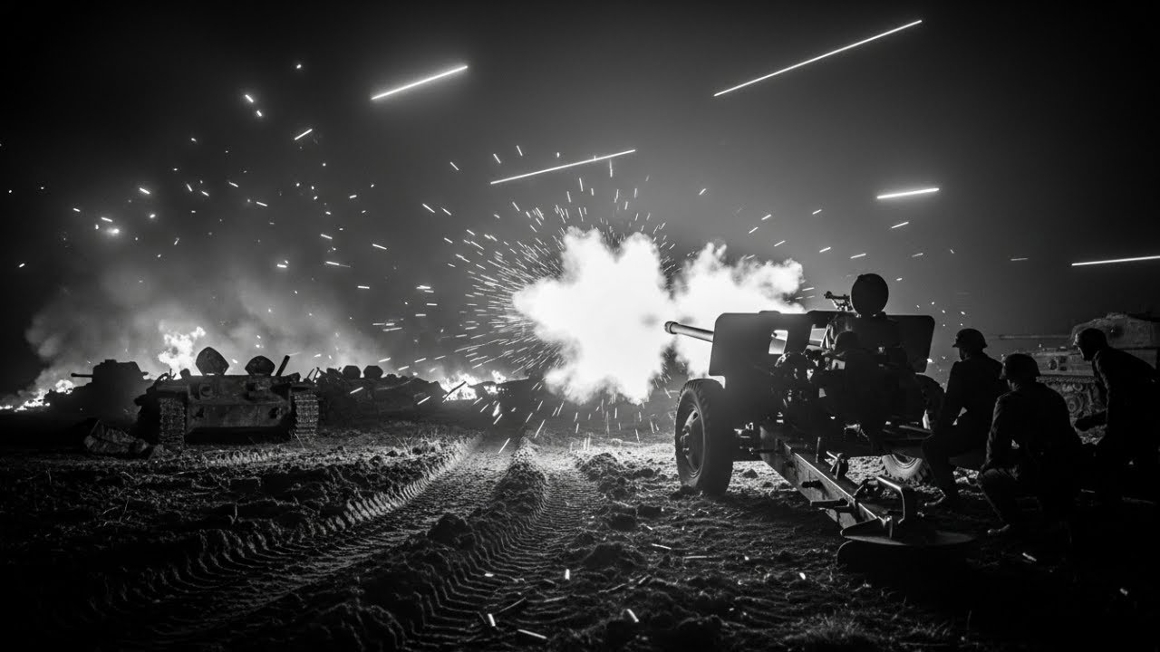 Die kalte Novemberluft hing schwer über den Hügeln von Bayern. Der Himmel war mit dicken Wolken bedeckt, die das Mondlicht filterten und eine geheimnisvolle Atmosphäre über die verschneite Landschaft warfen. In einer strategisch positionierten Stellung am Rande eines dichten Waldes stand ein 88 mm Geschütz, dessen elegantes Rohr in Richtung der weiten Ebene zeigte.