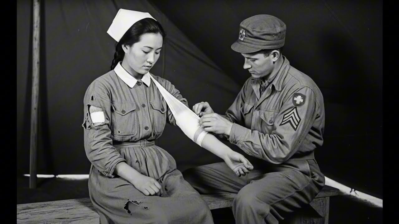 Sie hatte erwartet, Grausamkeit zu erfahren. Doch als sie in diesem provisorischen medizinischen Posten saß, war es etwas anderes, was sie erlebte. Eine junge japanische Krankenschwester, nicht älter als 20 Jahre, die Augen unsicher und voller Sorge, blickte auf ihre zerfetzte Uniform und den blutigen Ärmel. Der Geruch von Desinfektionsmittel mischte sich mit der Feuchtigkeit des Kanvas.